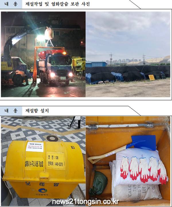 인천시(시장 박남춘) 종합건설본부는 겨울철 강설로 인한 교통 안전사고 예방 및 원활한 차량 통행을 위하여 겨울철 도로 제설대책을 수립․추진한다고 밝혔다.