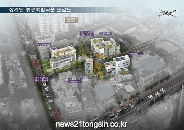 총 437억여 원(구비 322억 6천만 원, 시비 86억 7천만 원, 국비 27억 9천만 원)의 사업비를 투입하는 행정복합타운은 상계동 1035-3, 상계주공 15단지 아파트 인근 3,656㎡ 부지에 건립하며 ‘제2노인복지관’과 ‘보건지소’, ‘청소년 상담복지센터’와 ‘재활용센터’, ‘사회적경제 지원센터’ 등 5개 기관이 들어선다.