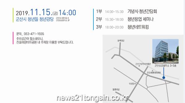 ‘청년뜰’ 개소식 행사는 11월 15일 오후 2시에 3층 청년 강당에서 개최했고 군산시장, 국회의원, 고용노동부 청년고용정책관, 지역 청년 등 150여명이 참석했다.