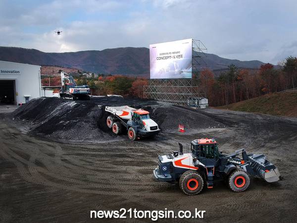 두산인프라코어는 20일, 충남 보령시 두산인프라코어 성능시험장에서 건설현장 종합 관제 솔루션 '컨셉트-엑스(Concept-X)’를 공개하고 시연회를 연다. 이날 행사에는 정관계 인사와 보쉬(Bosch), ASI, LG유플러스, 포테닛 등 ‘컨셉트-엑스’ 개발 관련 기업 및 기관, 학계 등에서 총 200여 명이 참석한다.