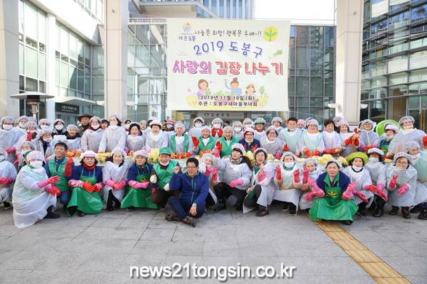 도봉구(구청장 이동진)는 11월 19일 구청 광장에서 ‘2019 사랑의 김장김치 나눔행사’를 개최했다.
