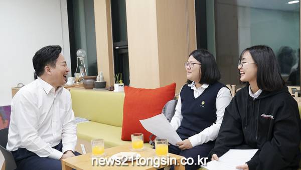 원희룡 제주특별자치도지사는 20일 오후, 도내 중학교에 재학 중인 두 명의 여중생을 만나 40분간의 취재에 응했다.