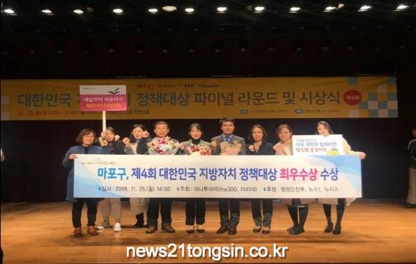 마포구(구청장 유동균)는 25일 오후 2시 교보생명빌딩 컨벤션홀에서 열린 「대한민국 지방자치 정책대상」 시상식에서 ‘평생학습도시 조성 사업’으로 최우수상을 수상했다고 밝혔다.