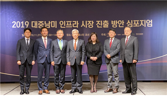 외교부는 해외건설협회와 공동으로 11.27(수) 서울 조선호텔에서 「지역개발은행을 활용한 중남미 진출 확대 방안」을 주제로 「2019 중남미 자원․인프라․신산업 협력 심포지엄」을 개최하였다.