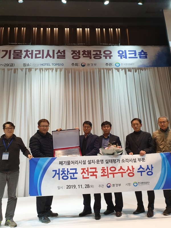 거창군은 환경부가 주관하고 한국환경공단이 시행한 2019년 폐기물처리시설 운영실태 평가에서 소각부문 전국 최우수기관으로 선정되어 환경부장관상을 수상했다고 28일 밝혔다.