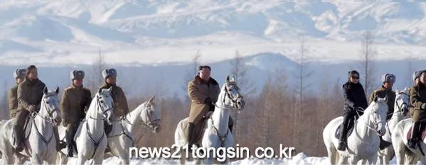 조선중앙통신은 4일 "최고영도자 동지께서 지휘성원들과 함께 군마를 타고 백두대지를 힘차게 달리며 백두광야에 뜨거운 선혈을 뿌려 조선혁명사의 첫 페이지를 장엄히 아로새겨온 빨치산의 피어린 역사를 뜨겁게 안아보시었다"고 보도했다.