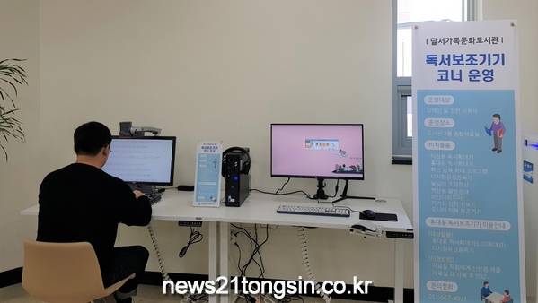 (대구 = 뉴스21통신/박창남기자) = 달서구는 달서가족문화도서관 종합자료실내에 장애인 및 고령자 정보접근성 확보를 위해 독서보조기기 코너를 신설, 12월부터 운영한다고 밝혔다.