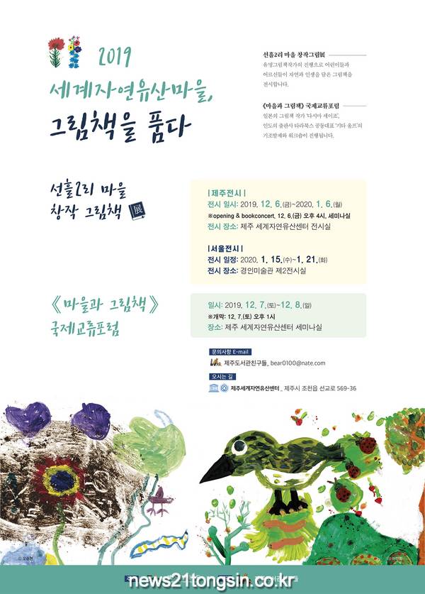 제주특별자치도 세계유산본부(본부장 고길림)가 주최하고 제주도서관친구들(대표 허순영)이 주관하는 세계자연유산 그림책마을 국제교류포럼이 오는 7일과 8일 양일간 제주세계자연유산센터에서 열린다.