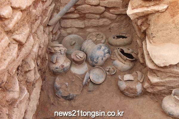 순장덧널 3기 중 1호에서는 긴 칼과 손칼 등 철기와 함께 토기들이 확인되었으며, 그중 뚜껑이 있는 접시에서는 장례 시 담았던 음식물로 보이는 새 뼈가 출토됐다.