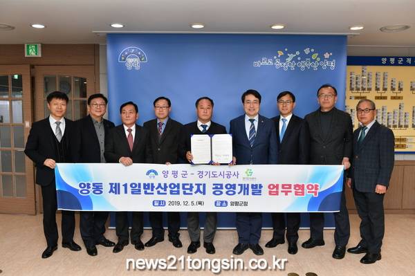 양평군은 경기도시공사와 양평양동 일반산업단지의 공영개발을 통한 공동 사업시행을 위하여 양평군청에서 5일 업무협약을 체결하였다. 협약식에는 정동균 양평군수 및 산업단지 조성 관련 부서장과 이헌욱 경기도시공사사장 및 관계자 등이 참석하여 양평 일자리 창출의 전초지 및 동부권 미래성장의 발전 동력이 될 산업단지 조성을 위하여 일반 업무협약을 체결하였다.