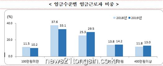 임금근로자 중 상용근로자는 164만 9천명(72.0%), 임시·일용근로자는 64만 1천명(28.0%)으로 나타났다.