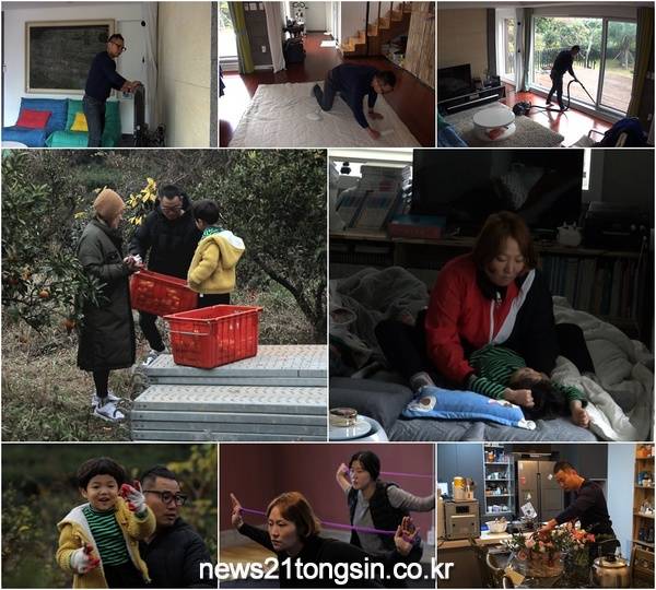 반면 ‘남편 윤종’이라 쓰고 ‘집안일 전담 안 사람’이라고 읽는 윤종은 김현숙과 180도 다른 일상으로 눈길을 사로잡았다. 바닥과 물아일체 된 삶을 실천하는 김현숙과는 달리 눈 뜸과 동시에 제주하우스 관리자 모드를 작동하며 살림, 육아의 달인 자태를 아낌없이 대방출하는 터. 설거지를 시작으로 이불 털기에 이은 마당 쓸기까지 오직 김현숙을 위한 ‘츤데레 로맨티스트’ 면모를 발산, 보는 이들의 부러움을 자아낸다.