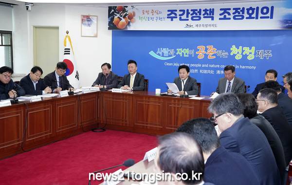 원희룡 지사는 이날 오전 도청 본관 2층 삼다홀에서 주간정책조정회의를 주재하며, 지역경제 활성화를 위한 재정집행 추진상황을 총괄 점검하고 90% 이상 달성을 위한 대책들을 논의했다.