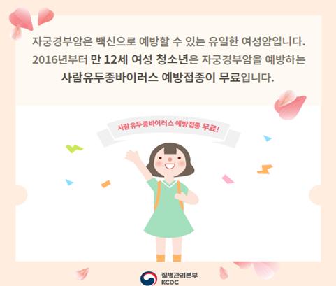 또한 내년 2020년 1월부터는 2007년1월1일~2008년 12월31일 사이 출생한 여성청소년을 대상으로 사람유두종바이러스 예방접종(2회)이 무료지원 될 예정이다.