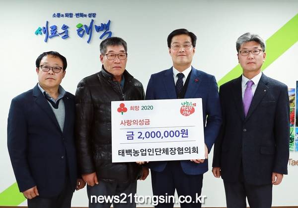 태백농업인단체장협의회(대표 김병용)는 20일(금) 태백시청을 방문, 희망2020나눔캠페인 이웃돕기 성금 200만 원을 기탁했다.