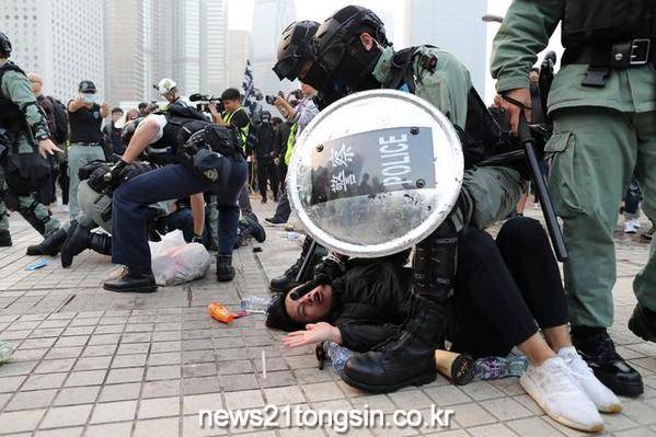 시위는 평화롭게 시작되었으나 시위대가 중국 국기를 땅에 놓고 밟는 등 과격한 행도을 보이면서 경찰과 크게 충돌했다.