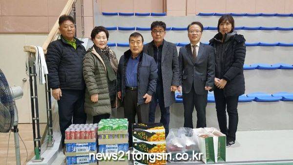 황연동 주민자치위원회(위원장 황현갑)는 20일(금) 세연중학교(교장 민병권)를 방문, 핸드볼 선수단에 35만 원 상당의 간식(빵, 음료, 닭강정 등)을 전달했다.