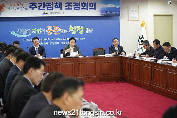이날 주간정책 조정회의는 올해산 노지감귤이 태풍과 잦은 비 날씨 등으로 평년에 비해 당도가 낮고, 5㎏기준 6천원 이하로 가격이 형성됨에 따라 감귤 산업의 위기를 타개할 대책이 시급하다는 분위기에서 마련됐다.