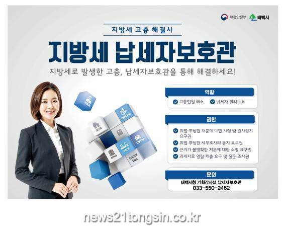 태백시는 납세자 권익 보호를 위해 2020년 1월부터 지방세 납세자보호관 제도를 운영한다고 밝혔다.