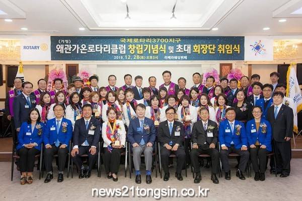 (경북=뉴스21통신) 유재원기자 = 2019-20년도 ‘함께하는 봉사! 행복한 로타리!’라는 지구슬로건인 국제로타리 3700지구 ‘왜관가온로타리클럽 창립기념식 및 초대회장단 취임식’을 2019.12.28. 15시에 내빈 100여명이 참석한 가운데 리베라웨딩에서 성대하게 화려한 출발포를 쏘아 올렸다.