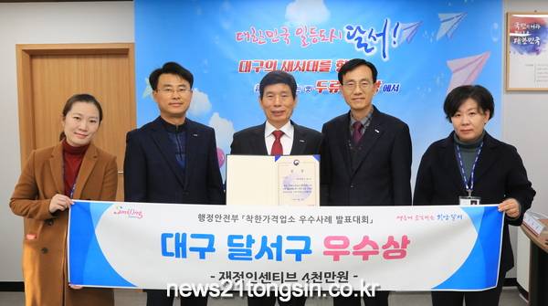 (대구 = 뉴스21통신) 박창남 기자 = 달서구는 ‘2019 전국 착한가격업소 우수사례 발표대회’에서 우수상 수상으로 4천만원의 인센티브를 확보했다고 밝혔다.