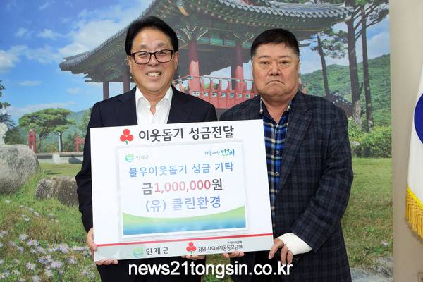 클린환경(대표 정인식)은 27일 인제군청을 방문해 관내 저소득 취약계층 주거환경 개선을 위해 써달라며 100만원을 불우이웃돕기 성금으로 전달했다.