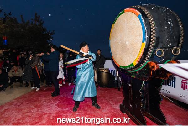본격적인 해맞이 축제는 오전 7시부터 아차산 해맞이 광장에서 진행됐다. 경자년 첫 태양을 깨운다는 의미의 신명나는 타북공연과 성악공연을 시작으로, 김선갑 구청장이 신년메시지를 낭독하고, 큰북을 3회 타고하는 시간이 이어졌다.