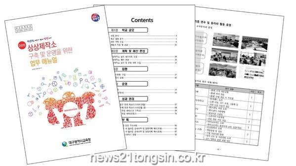(대구=뉴스21통신) 유재원기자 = 대구시교육청은 상상제작소 담당자 업무를 경감하고 학교에서 메이커교육을 보다 쉽게 접할 수 있도록 ‘상상제작소 구축 및 운영을 위한 업무매뉴얼’을 발간해 보급한다.
