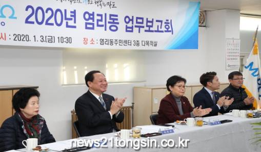 지난 3일 개최된 염리동 업무보고회에서는 ▲주민이 직접 참여하여 준비하는 ‘2020 염리동 소금축제’ ▲주민들이 소통할 수 있는 거점형 마을쉼터 조성 ▲동 주민센터 유휴공간에 염리동 주민이 함께 공유할 수 있는 공유부엌(식구의 탄생)조성 ▲1사 1촌 사랑 나눔 사업 등에 대해 주민과 공유하고 의견을 청취하는 시간을 가졌다.