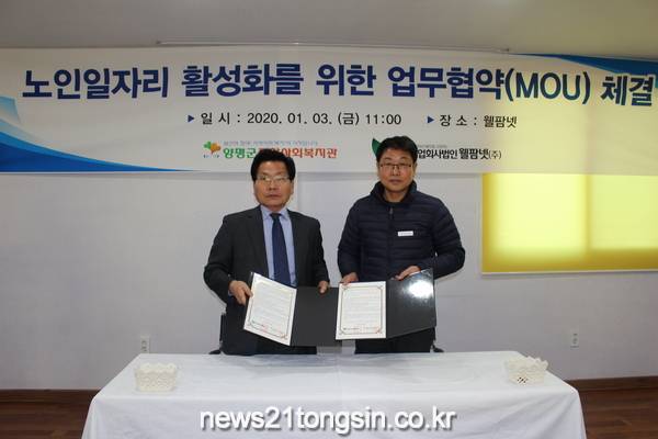 농업회사법인 웰팜넷(주) 양승기대표와 양평군종합사회복지관 강동연 관장은 2020년 1월 3일 농업회사법인 웰팜넷(주) 본사에서 “2020년 노인사회활동 공동작업장사업(산들 시니어)의 업무협약식(MOU)”을 진행하였다.