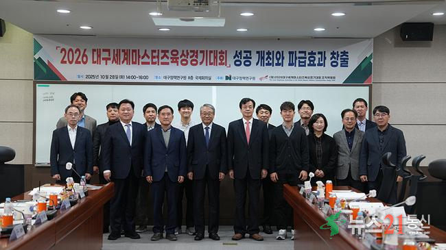 2026대구세계마스터즈육상경기대회 조직위원회(사무총장 진기훈)는 대구정책연구원(원장 박양호)과 공동으로 10월 28일(화) 오후 2시, 대구정책연구원 8층 국제회의실에서 ‘2026대구세계마스터즈육상경기대회 성공 개최와 파급효과 창출’을 주제로 정책세미나를 개최했다. 이번 세미나는 2026년 8월 대구에서 열릴 세계마스터즈육상경.