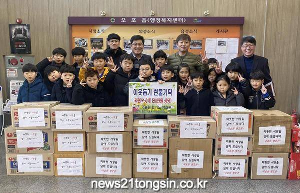 이에 대해 권용석 읍장은 “고사리 손으로 정성을 담아 준비한 나눔에 감동 받았다”며 “관내 취약계층에게 큰 힘이 될 것”이라고 화답했다.