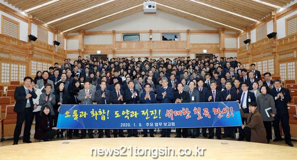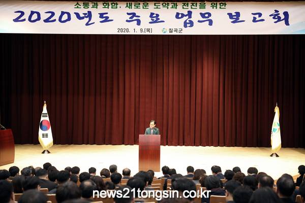 (대구=뉴스21통신) 유재원기자 = 칠곡군은 지난 9일 향사아트센터에서 6급 이상 직원 250여 명이 참석한 가운데 신년도 업무역량 결집을 다짐하는 ‘2020년 주요업무계획 보고회’를 가졌다.
