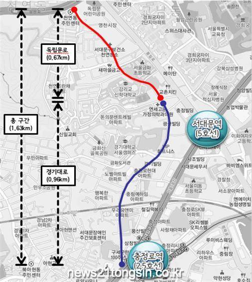 서대문구가 ‘독립문로’에서 ‘경기대로’로 이어지는 천연·충현동 일대 내부 도로에 대해 보행환경 개선사업을 추진한다.