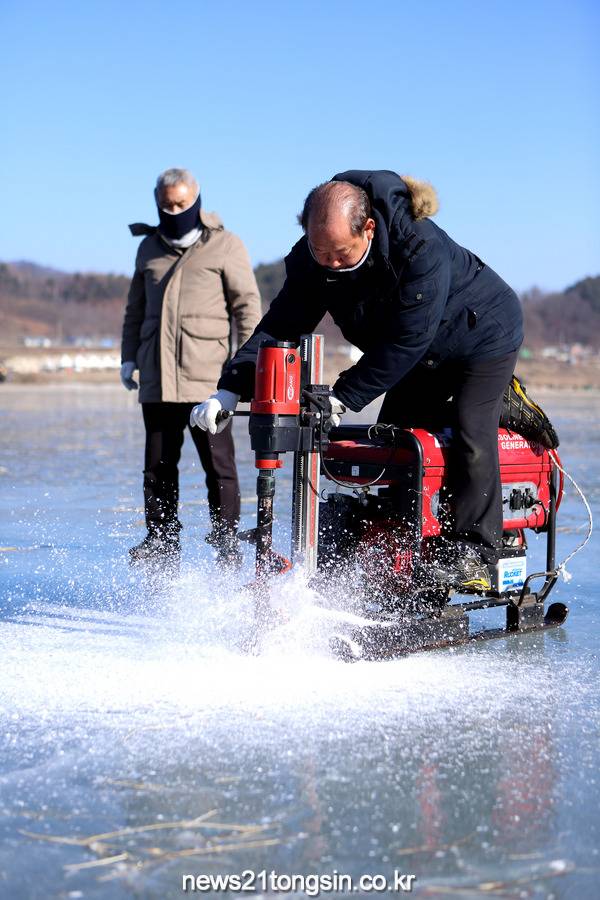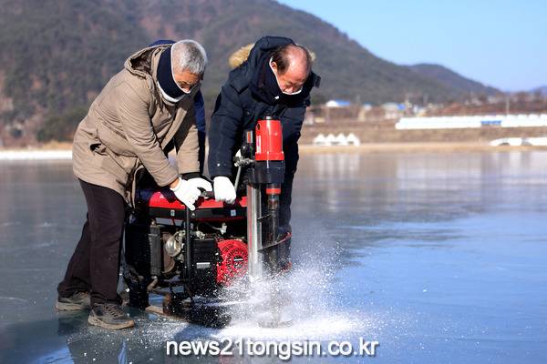 축제 개막일을 앞두고 연일 한파가 이어져 17일 현재 빙어호 상류의 얼음두께는 안전기준인 20cm 이상 두껍게 형성돼 축제장을 찾은 관광객들이 대자연 속 은빛요정 빙어를 얼음낚시의 손맛으로 즐길 수 있게 됐다.