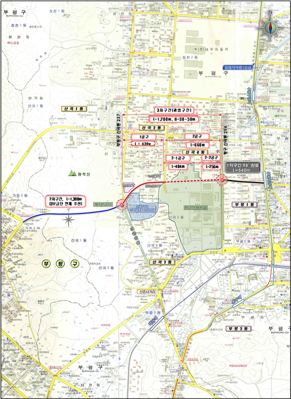 부평동~장고개간 도로개설공사(3-1공구)는 부평구 마장로 제3보급단에서 장고개삼거리를 연결하는 총길이 1,280m 중 미군기지 외 구간인 제3보급단에서 안남로를 연결하는 길이 620m, 폭 30m(6차선) 도로로 총사업비 350억원을 투입하여 개통하였다.