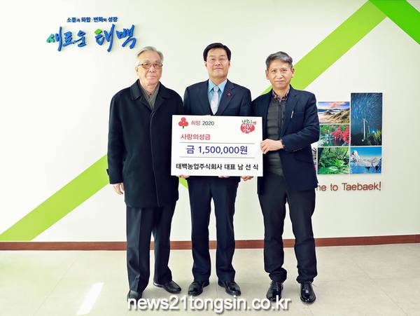 농업회사법인 태백농업주식회사(대표 남선식)가 20일(월) 태백시청을 방문, 이웃돕기 성금 150만원을 기탁했다.