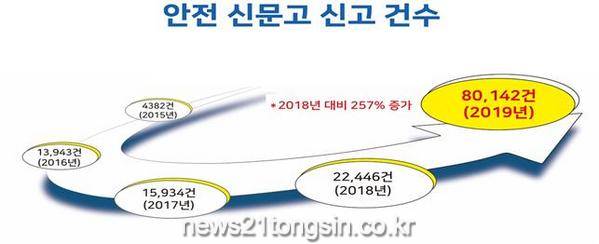 지난해 대구시 ‘안전신문고’ 신고 건수는 모두 80,142건이며, 인구 1만명당 326건으로 7대 특‧광역시 중 대전에 이어 두 번째로 높은 수치다.