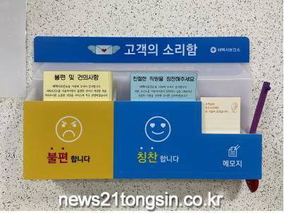 방문객 누구나 평소 민원처리 과정에서 겪은 불편사항이나 직원들의 친절 여부, 개선 요구 사항 등을 카드에 작성해 소리함에 넣으면 된다.