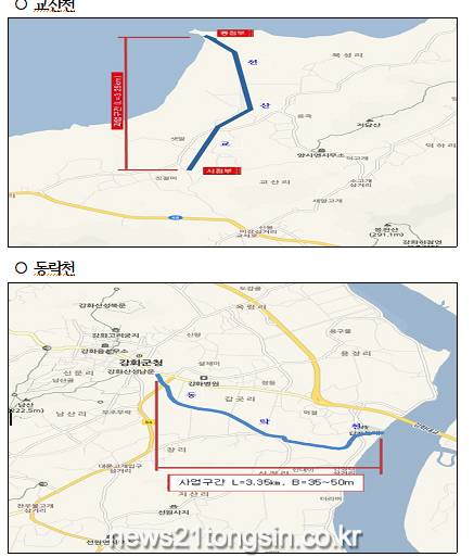 『교산천·동락천 수해상습지 개선사업 설치공사』는 총사업비 527억원 (국비 263.5억, 시비 263.5억원)으로 2020년부터 2024년까지 홍수에 안전하도록 제방을 높이고, 교량을 재가설해 부족한 통수능력을 확보하여 제방 호안을 정비해 치수적으로 안전한 하천을 조성하는 사업이다.