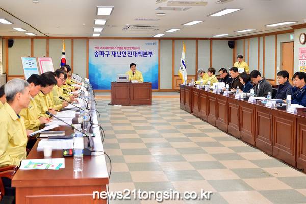 구는 지난 28일 재난상황관리반 등 8개 반으로 이뤄진 ‘송파구 안전대책본부(본부장 구청장)’를 구성했다. 이어서 31일 재난안전대책본부 회의를 소집하고 관내 경찰서, 소방서, 강동송파교육지원청 등 7개의 유관기관과 롯데월드타워, 가든파이브, 아산병원 등 대규모 민간다중이용시설 관계자와 함께 공동대응을 위한 정보를 공유했다.