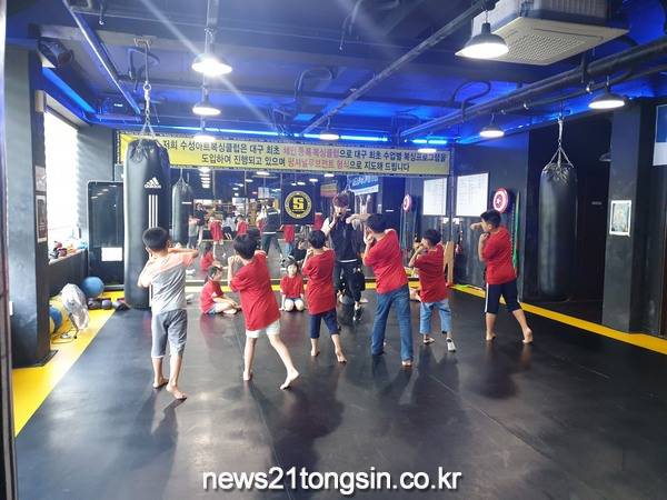 (대구 = 뉴스21통신) 박창남 기자 = 지난해 대한체육회에서 주관하고 대구 달서구 본영지역아동센터와 수성아트복싱장의 후원으로 “2019 행복나눔 복싱교실을” 7월~10월 약 3개월간 대구 달서구 수성아트복싱장에서 행사를 진행하였다.
