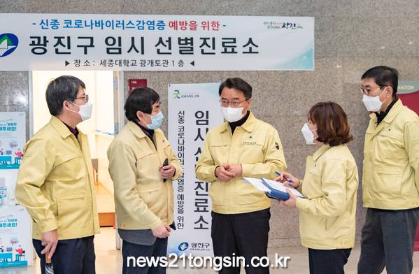 김선갑 광진구청장은 12일 세종대학교 광개토관에 설치된 임시 선별진료소를 방문했다.