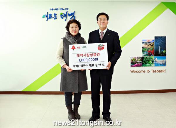 삼수동 소재 태백산막국수(대표 성연모)에서 13일(목) 태백시에 태백사랑상품권 1백만 원을 탁했다.