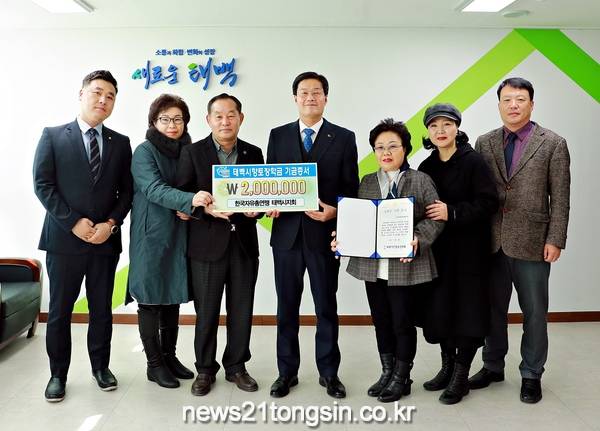 한국자유총연맹 태백시지회(회장 신원철)가 19일(수) 태백시에 향토장학금 200만원을 기탁했다.