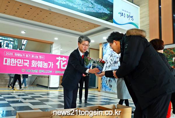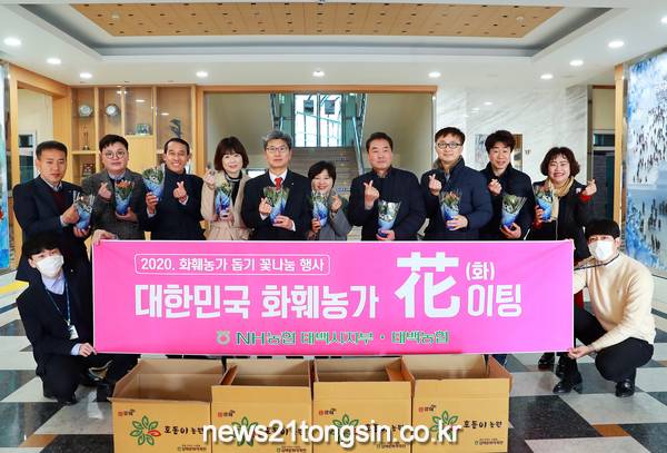 태백시는 NH농협 태백시지부와 태백농협이 오늘(20일) 오전 8시부터 태백시청 로비에서 화훼농가 돕기 꽃나눔 행사를 가졌다고 밝혔다.