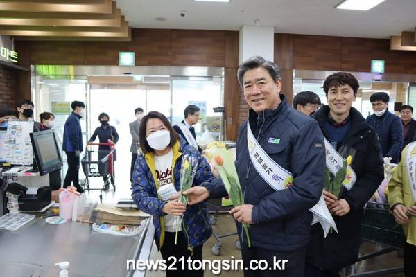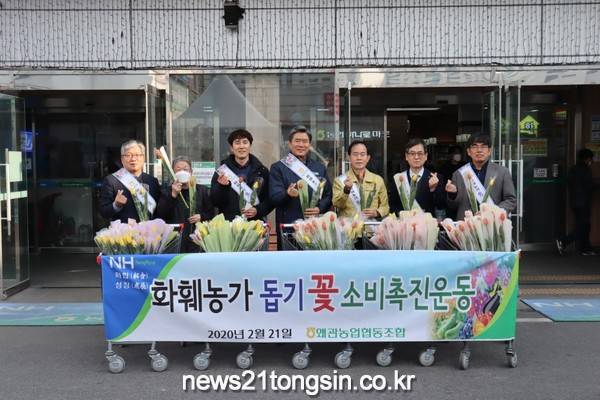 (경북=뉴스21통신) 유재원기자 = 칠곡군 왜관농업협동조합은 21일 화훼농가돕기 및 꽃 소비촉진운동을 몸소 실천하며 아름다운 동행의 손길을 보냈다.