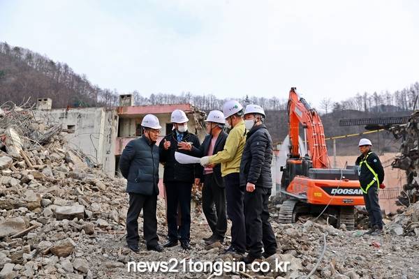 류태호 태백시장이 장성 탄탄마을 도시재생뉴딜사업 추진을 위해 20일(목)부터 철거가 시작된 화광아파트 현장을 21일(금) 오후 찾았다.