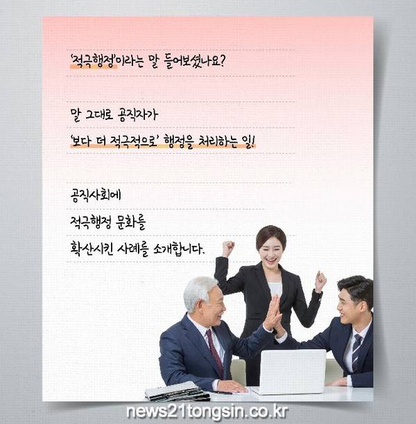 또한, 홈페이지내 적극행정 코너를 개설하여 제도 소개 및 소식 알림, 적극행정 공무원 추천게시판 운영하고 적극행정 활성화 및 소극행정 혁파를 통해 군민이 체감할 수 있는 적극행정 실행과제를 중점적으로 추진한다.