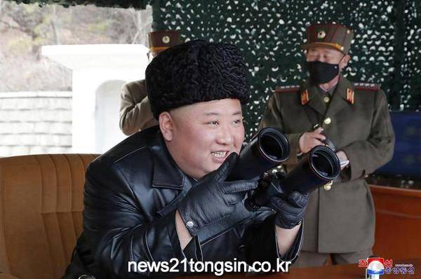 김정은 위원장은 모자 등으로 중무장했지만 마스크를 쓰지 않았다. 이번 훈련에는 수행한 박정천 군 총참모장이 검정 마스크를 쓴 것과 대조적이다.